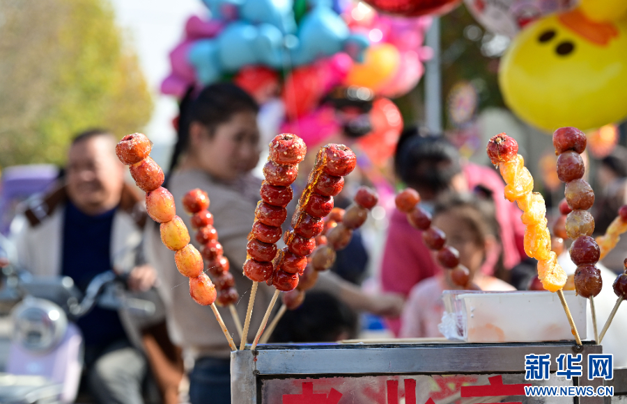 在鹤壁市淇县西岗物资交流大会上,红艳艳的冰糖葫芦,在冬日的阳光下格外诱人。张胜旗 摄