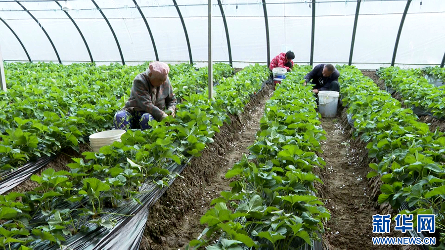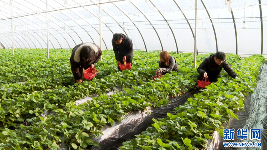 11月18日,在濮阳市台前县孙口镇草莓园大棚,农户们在采摘草莓。杨金贯 摄
