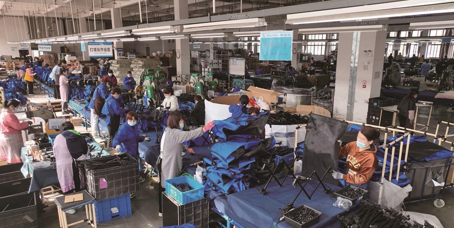 赶订单的户外休闲用品企业生产车间 通讯员 李亚超摄