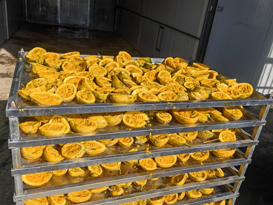 11月26日,走进确山县任店镇王班庄村瓜蒌种植基地,一串串金黄饱满的瓜蒌挂满枝头,村民们穿梭其间,熟练地采摘、剥离果肉果皮、转运洗籽、分批烘干,将一年的辛勤付出化作金灿灿的收获。