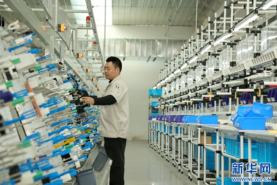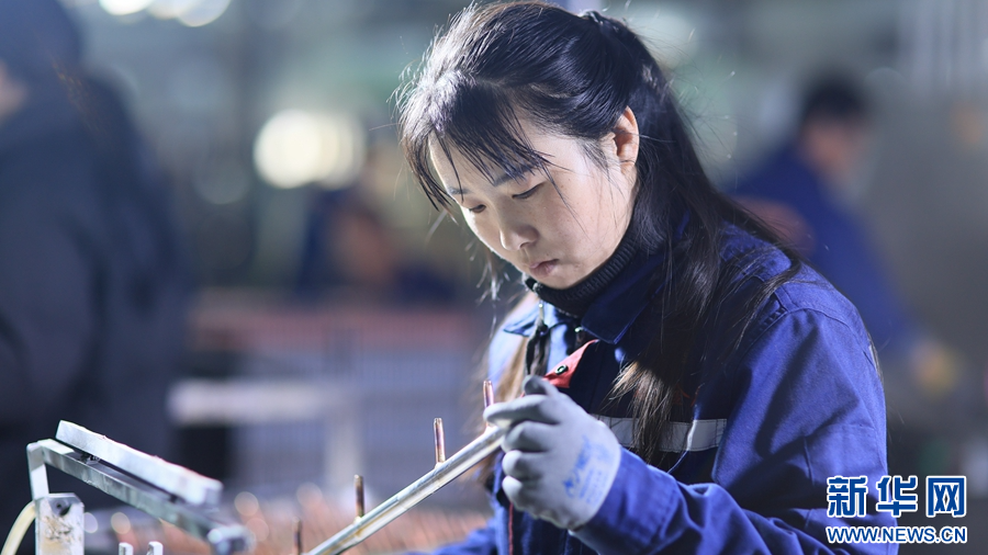 11月26日,河南省原阳县,新乡市瑞立新材料股份有限公司的员工正在生产线上检查汽车空调和家用空调的制冷管路。朱新国 摄