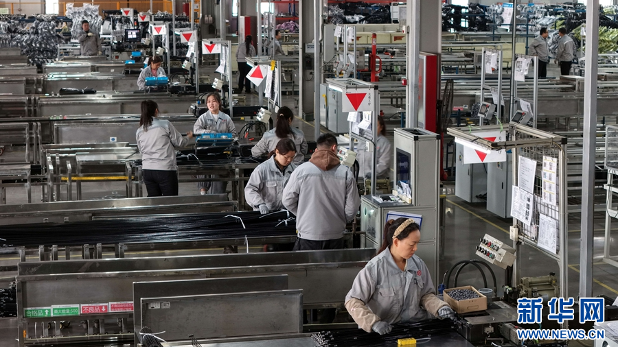 11月26日,周口市淮阳区,豪达汽车配件(周口)有限公司车间内,工人们正在整理成品线束。苏雪松 摄