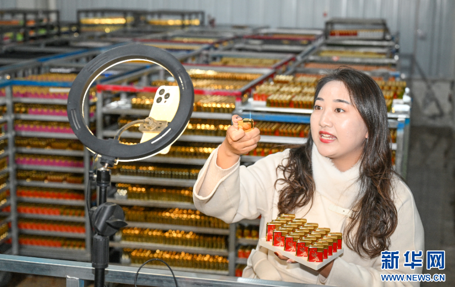 夏邑县会亭镇一家打火机企业的电商部负责人在直播带货。