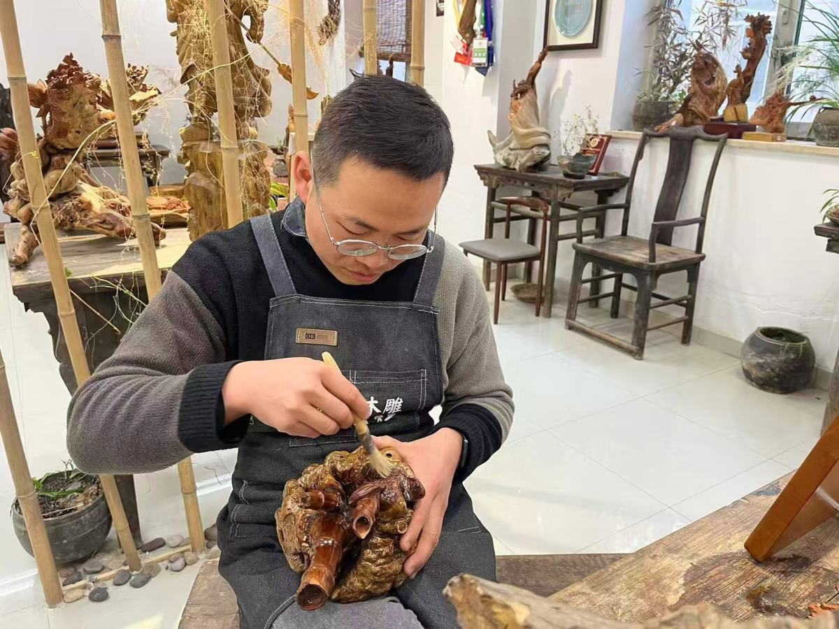 河南省级非遗巩义木雕传承人陈廷昂,自幼浸润家族技艺,20岁正式学艺,精通识木、凿刻、上漆等全套工序。他创立木雕工作室,推出“免学费、管食宿”公益教学,不仅传授实操技能,更深挖河洛木雕文化内涵;联动小学开设非遗课堂,让孩子们亲手体验榫卯工艺,推动传统木雕走进校园、贴近生活。