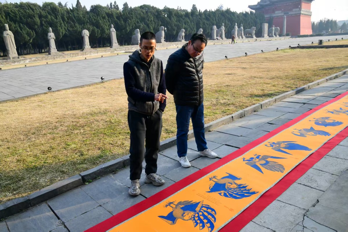 剪纸艺人李磊强则以宋陵文化为创作核心,走遍永昭陵、永定陵等遗迹,捕捉文臣冠冕、石像生等历史元素,将剪纸与白描技法结合,耗时四个半月创作出17米长卷《北宋皇陵瑞禽图》。他以纸为媒,让千年宋陵的厚重历史,在剪纸的灵动线条中跨越时空,尽显巩义本土文化魅力。