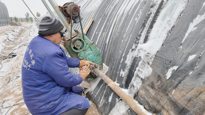 1月19日,在卫辉市汲水镇下园村,种植户正在加固大棚。李冰砚 摄