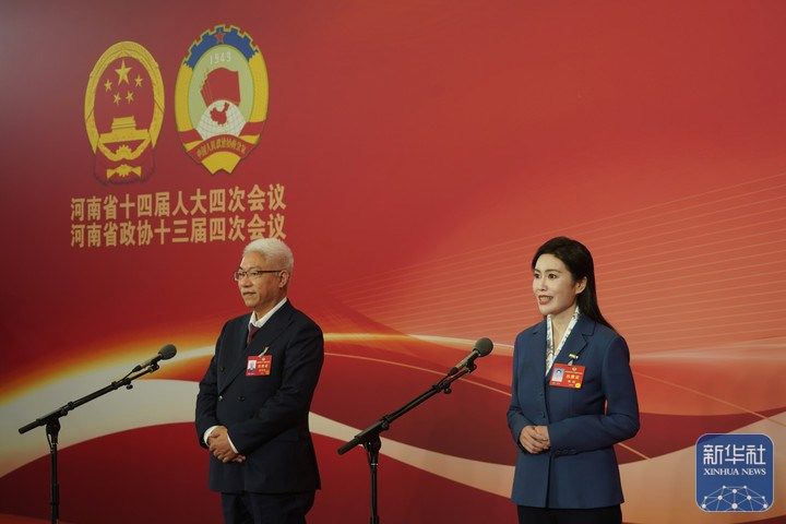1月25日上午,河南省人民会堂,部分河南省政协委员在“委员通道”回答记者提问。(新华社记者 王前慧 摄)