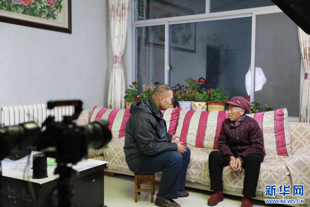 李俊生(左)在为红旗渠建设者拍摄口述史视频。新华社记者 杨静 摄