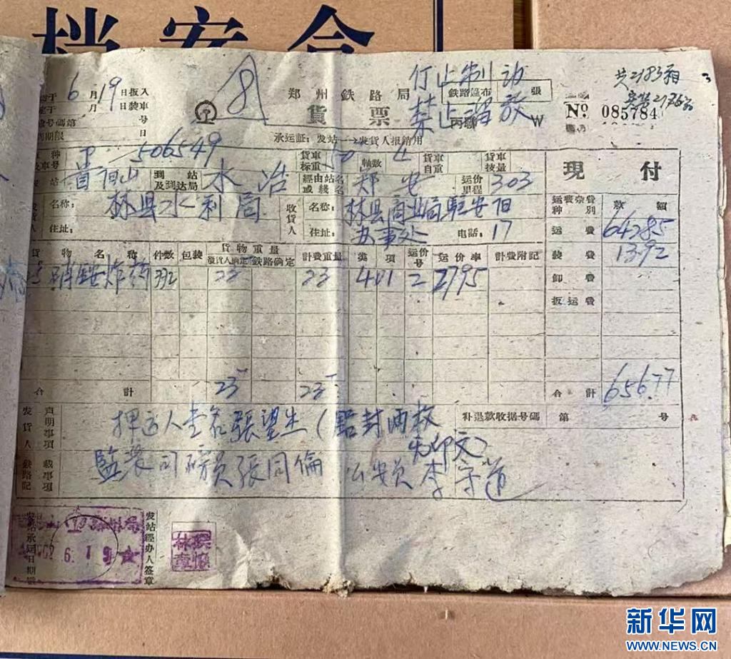 李俊生对一沓铁路货运单情有独钟。“当时修渠急需炸药,这批物资从洛阳运到安阳水冶,再转运到修渠工地”,他指尖轻抚笔迹,“押运人、司磅员、公安员……每一道手续都清清楚楚。这批货运单,就是当年修渠的见证!”