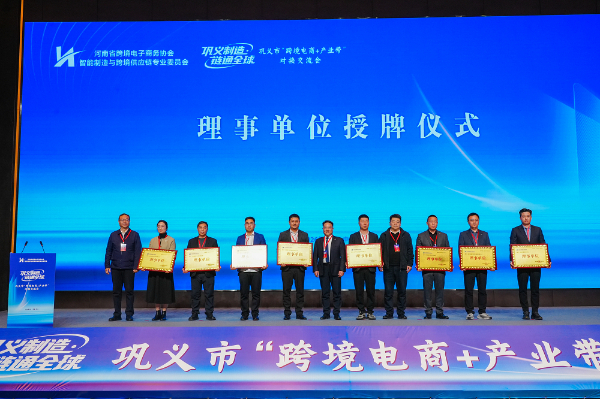 图为活动现场举行的河南省跨境电子商务协会智能制造与跨境供应链专业委员会授牌仪式。(巩义市委宣传部供图)