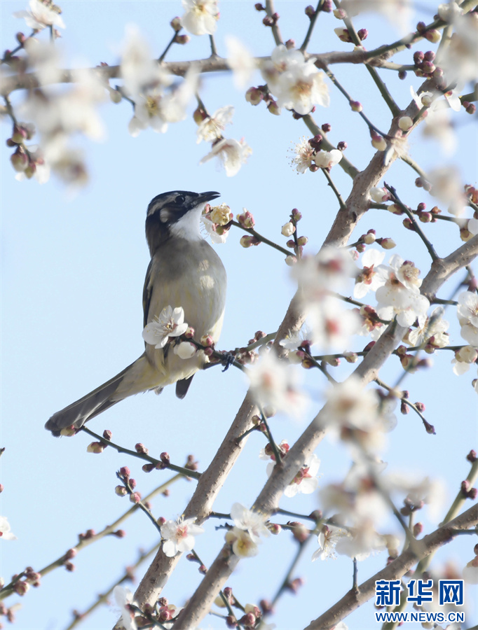 2月4日,一只鸟儿在河南省鹤壁市淇滨区漓江游园内的树枝上栖息。新华社发(赵永强 摄)
