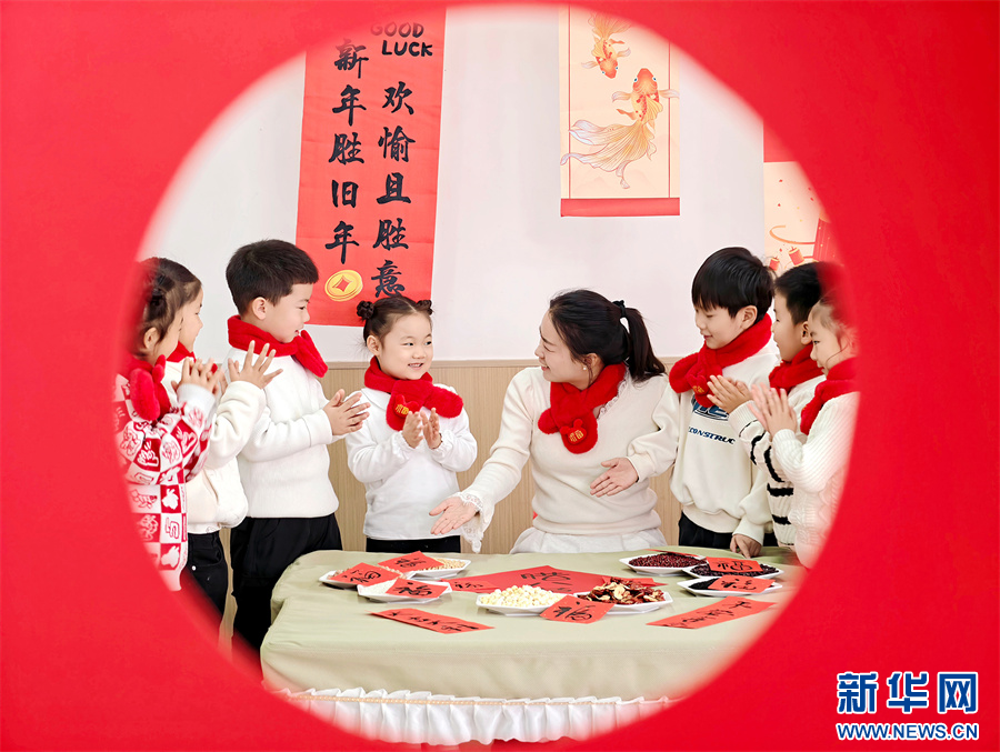 2月2日,在河南省焦作市博爱县县直幼儿园,小朋友开展文艺演出活动。新华社发(程全 摄)