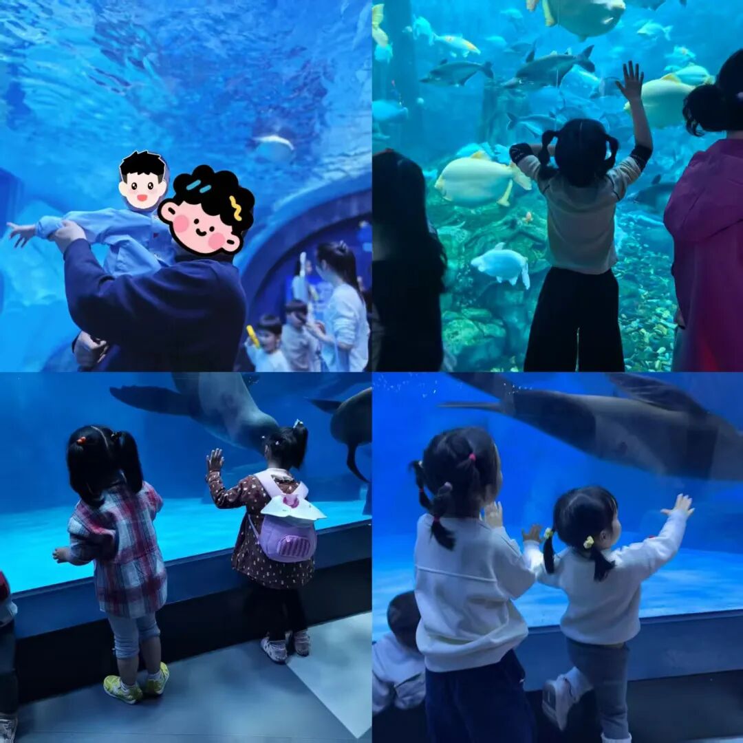 文艺汇演结束后,孩子们迫不及待地走进海洋世界。蔚蓝的水族箱前,成群的热带鱼穿梭而过,憨态可掬的企鹅摇摆前行,海豚跃出水面时引来阵阵欢呼。对于这些“星星的孩子”来说,这片蓝色的世界似乎有一种特殊的魔力——他们专注地盯着游动的生物,有的甚至主动拉着父母的手指向远处,用表情和动作分享着惊喜。