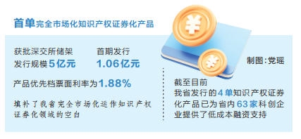 截至目前,我省发行的4单知识产权证券化产品,已为省内63家科创企业提供了低成本融资支持,有效突破了科技型中小企业“轻资产、融资难、融资贵”的瓶颈。(全媒体记者 孔学姣)