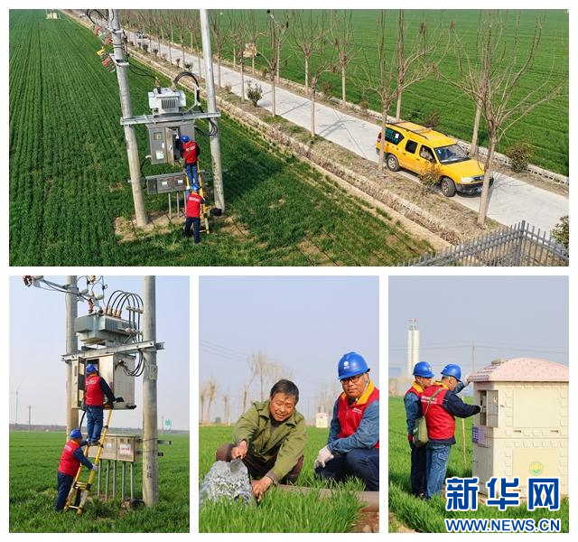 4月7日,国网濮阳供电公司组织焦裕禄共产党员服务队深入田间地头,开展春灌用电专项巡检(拼版图片)。(卢莎莎 摄)