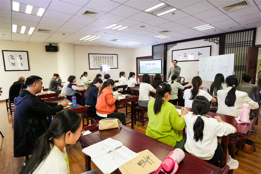 4月20日,河南省郑州市巩义市文化馆弘文书院内举办《中庸》导读讲座。(康泽 摄)