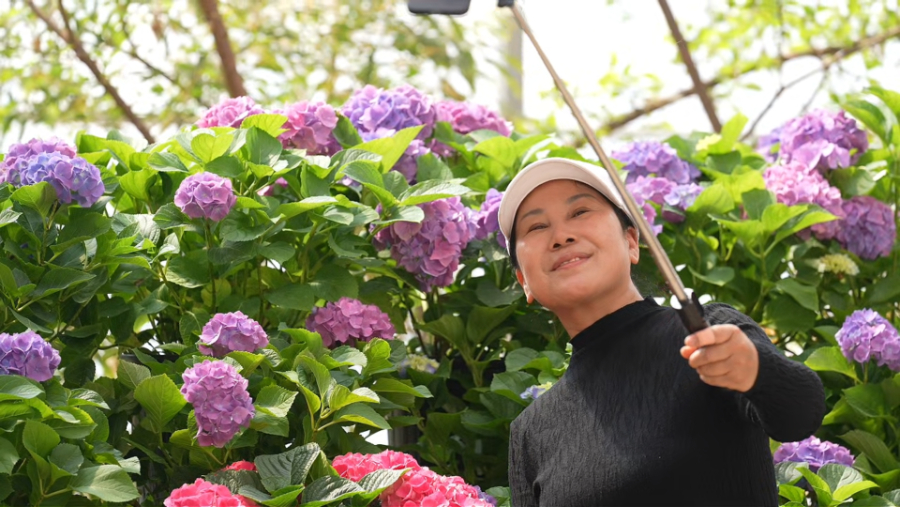 黄河岸畔绣球花开