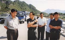 中共中央委员、河南省委书记陈奎元(中)莅临焦公路视察