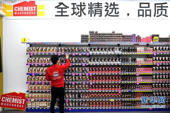 澳大利亚CW大药房郑州线下店的员工在整理商品价签(11月6日摄)。 新华社记者 李嘉南 摄