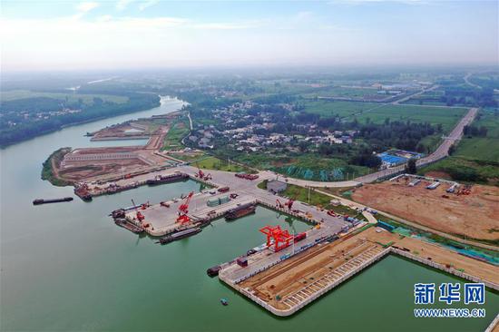 7月31日拍摄的周口中心港码头(无人机照片)。 新华社记者 李嘉南 摄