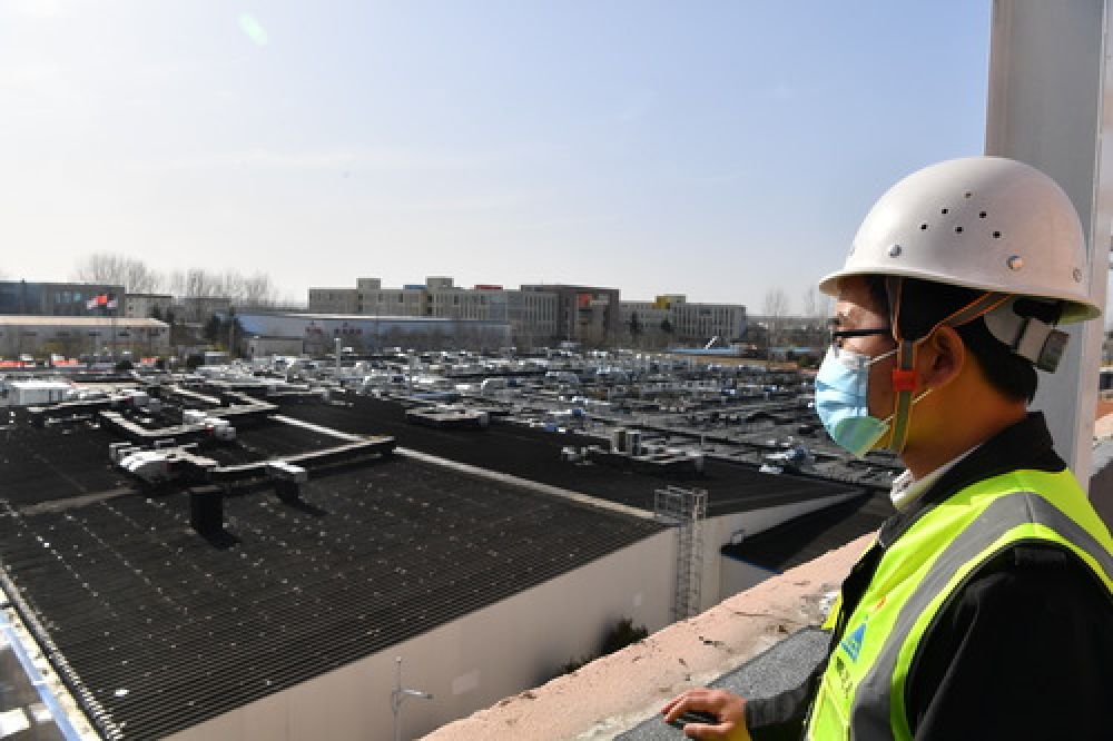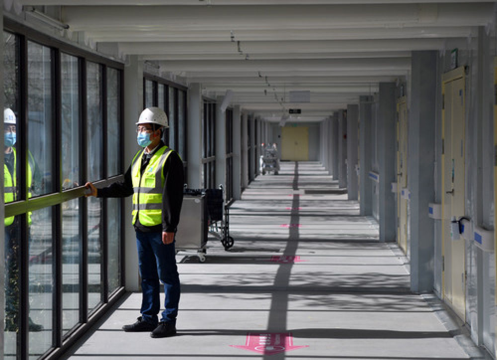 梁少智在郑州岐伯山医院查看自己参与建设的疑似患者隔离病区(3月10日摄)。新华社记者 李嘉南 摄