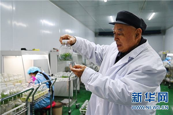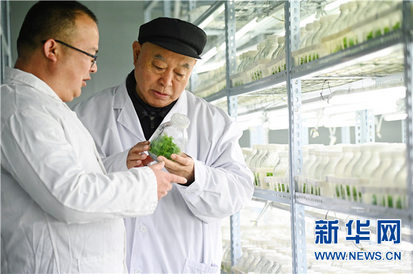 3月11日,吴金印在唐庄镇楸树育苗基地培育车间查看。新华社记者 张浩然 摄