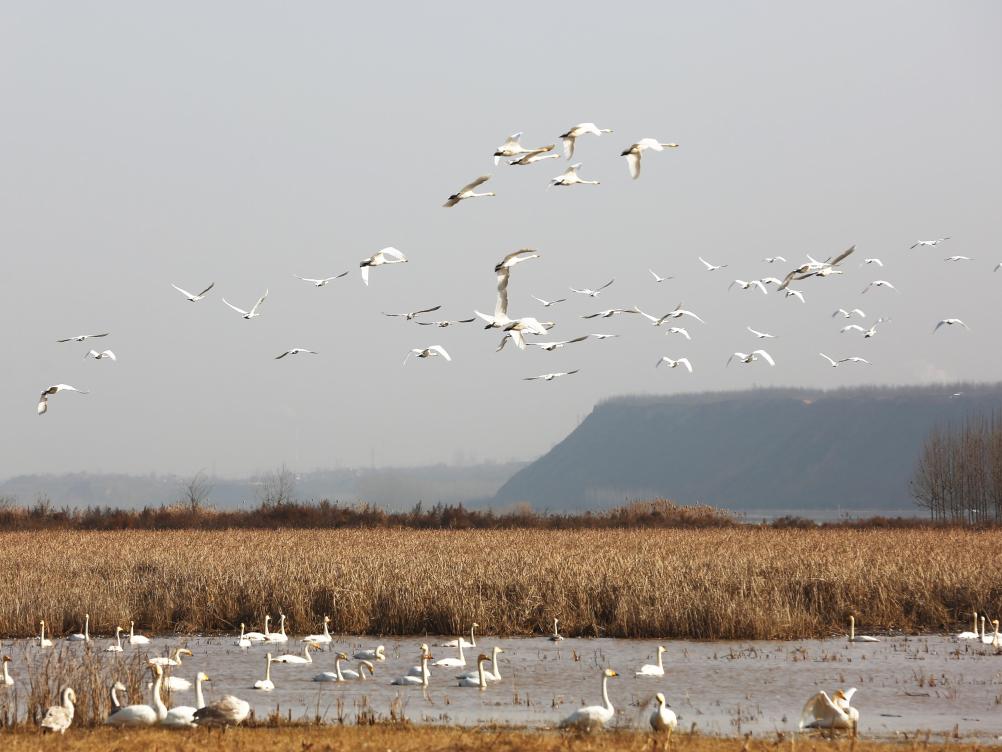 近年来,随着生态环境的改善,三门峡黄河湿地已由原来的天鹅迁徙停歇地变为越冬地,天鹅数量由10余年前的几百只增加到现在的超过1.6万只。