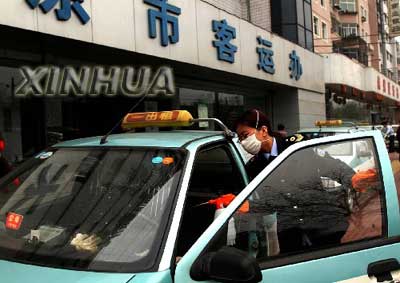 为了预防非典型肺炎,从4月21日起,郑州市所有公交车辆开始消毒。