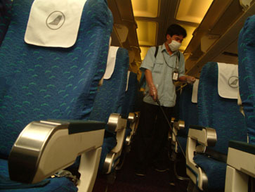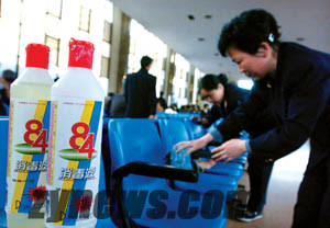 根据卫生部、财政部、铁道部等五部委联合下发的文件精神,昨天,河南省省会郑州的火车站、飞机场和各个汽车站点纷纷开始大规模喷洒药物消毒,防治非典型肺炎发生。